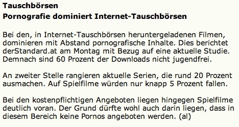 Ausser Spesen nix gewesen: Knapp 100 Millionen Franken investierte die australische Regierung in die Programmierung eines Pornofilters. Die Software sollte Kinder vor nicht jugendfreien Inhalten im Internet schützen. Der 16-jährigen Tom Wood aus Melbourne knackte den Filter in gerade mal 30 Minuten. Peinlich berührt programmierten die IT-Spezialisten eine besser geschützte Version. Diese knackte der Schüler in 40 Minuten.