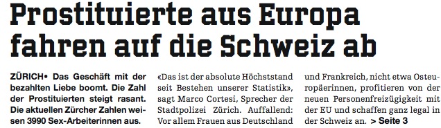 Seit dem 1. Juni 2007 wendet die Stadt ein strengeres Bewilligungsverfahren für Sexarbeiterinnen aus den neuen EU-Ländern an: Das Amt für Wirtschaft und Arbeit hat für Frauen aus Osteuropa die Hürden erhöht, legal in Sexsalons zu arbeiten. Als Folge davon bieten die Frauen ihre Dienste auf der Strasse an. Dort können sie den Preis und die Art ihrer Liebesdienste bestimmen, sind aber einem erhöhten Risiko ausgesetzt.