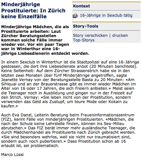 Die Passantin brachte die junge Thailänderin in Kontakt mit dem FIZ, dem Fraueninformationszentrum in Zürich. Das FIZ ist die einzige Schweizer Fachstelle für Frauenhandel und berät betroffene Frauen aus Afrika, Asien, Lateinamerika und Osteuropa. «Die Frauen sind oft so eingeschüchtert und bedroht worden, dass sie nicht gegen die Täter aussagen wollen», erzählt Doro Winkler vom FIZ. In den meisten Fällen wollen die Frauen so schnell wie möglich wieder nach Hause, können dies aber auf Grund der Bedrohungssituation nicht.